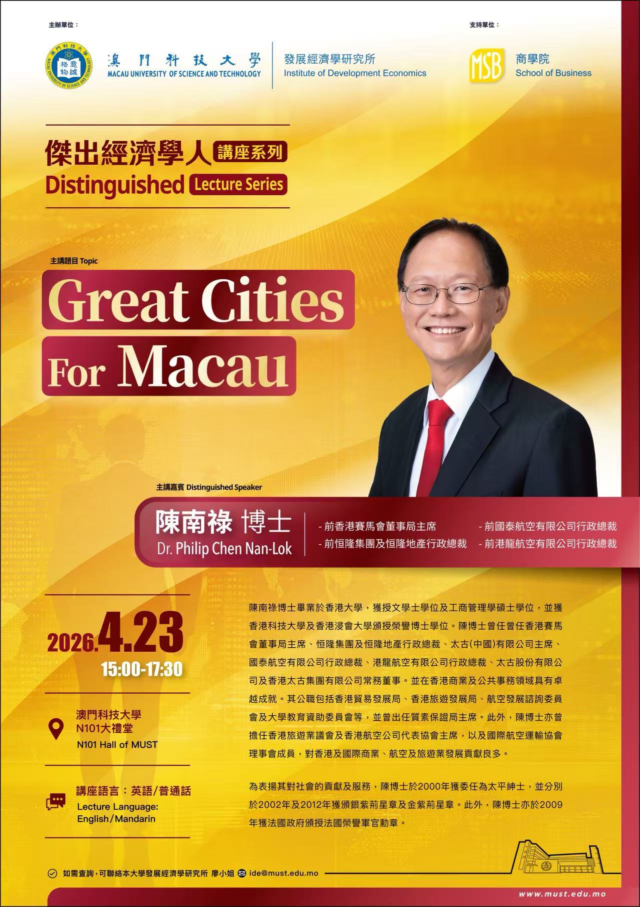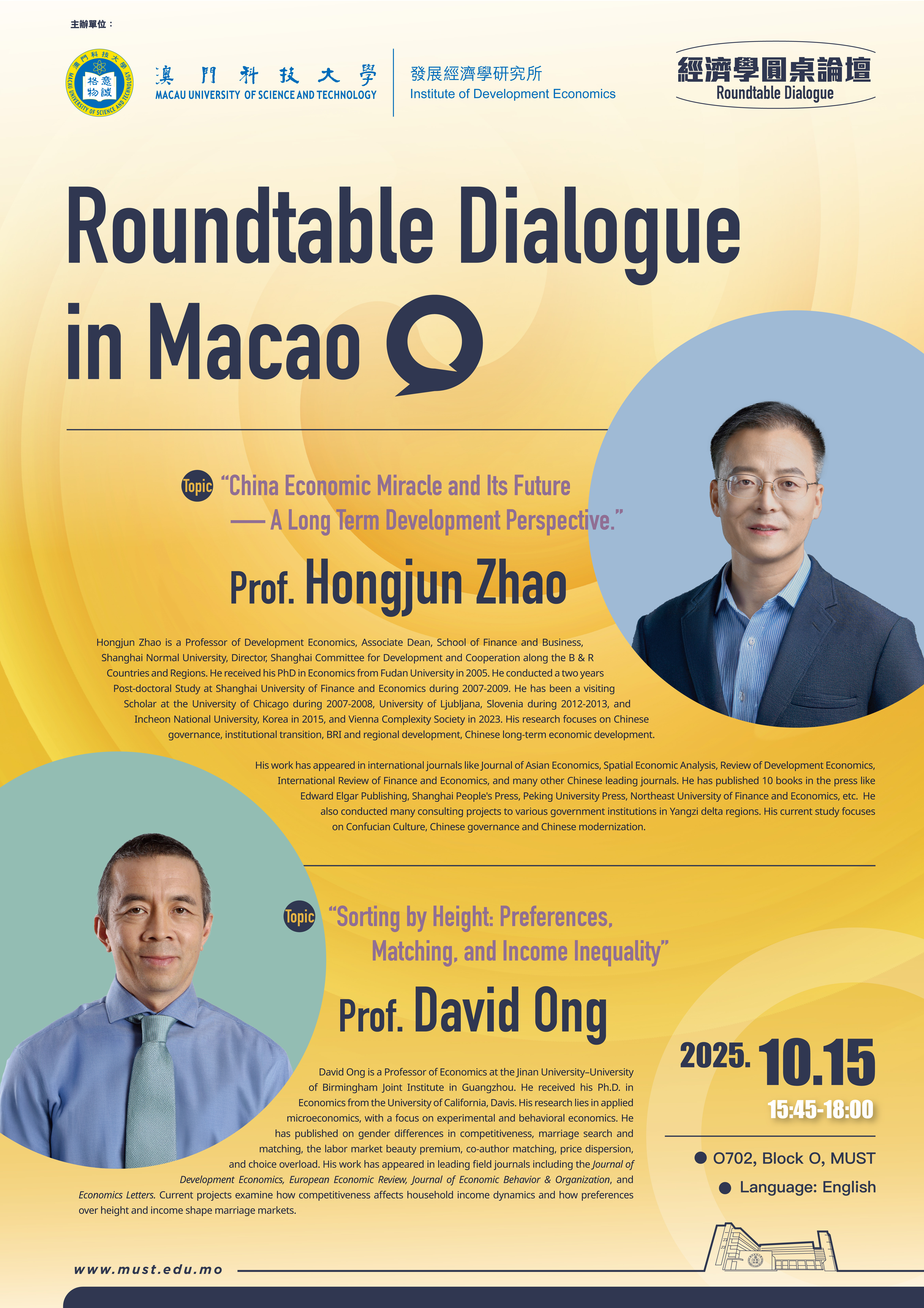 我們賴以生活的世界,正在經歷著深刻的變化,這些變化來得如此急劇,以致大多數人根本還沒有準備好。這對政府、企業、及人民都必然會帶來新的機遇及棘手的挑戰。澳門科技大學發展經濟學研究所的成立,正在於要不懈地硏究、發現、及傳播有助於我們掌握及應付新時代的知識。