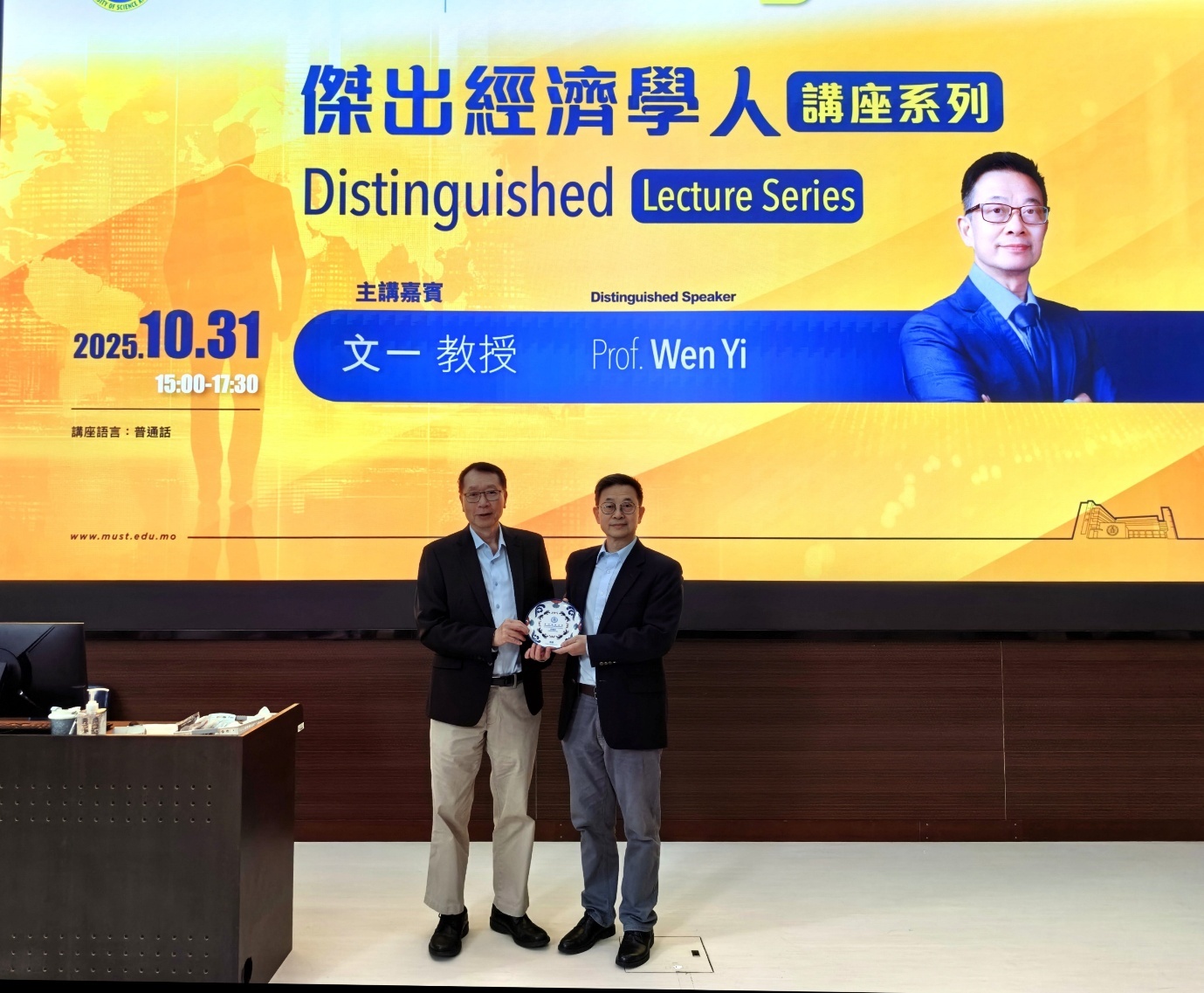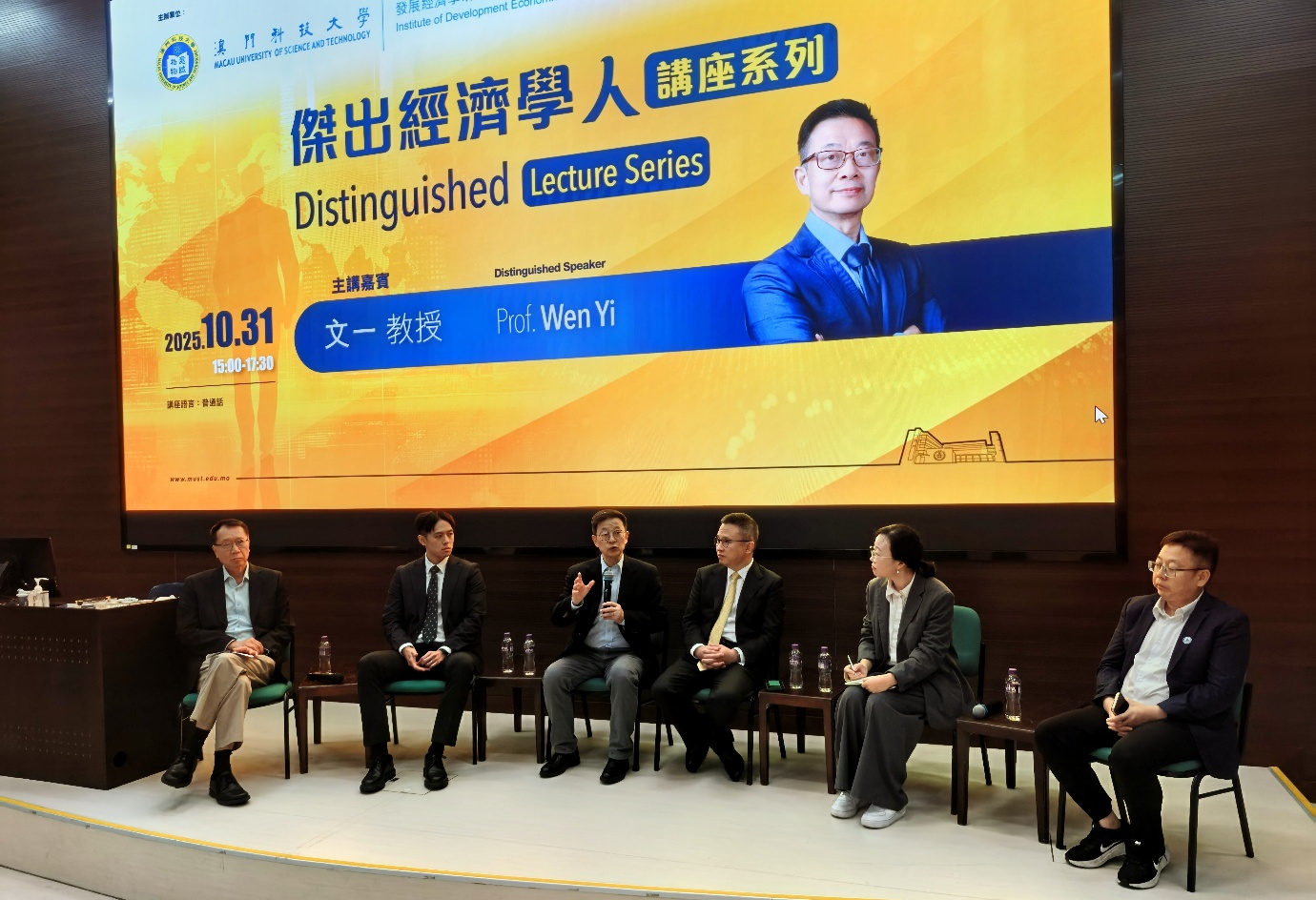 The Institute of Development Economics at Macau University of Science and Technology (MUST) hosted the Distinguished Lecture Series on October 31, 2025, at 3:00 PM in O702, in collaboration with the School of Business at MUST. The keynote speech was delivered by Professor Wen Yi, Distinguished Professor at the Antai College of Economics and Management, Shanghai Jiao Tong University, and former Assistant Vice President of the Federal Reserve Bank of St. Louis. The university invited local finance, economics, and entrepreneurs and scholars to participate in a round-table discussion. The event aims to promote a greater understanding of China economics through high-quality academic lectures and discussions.